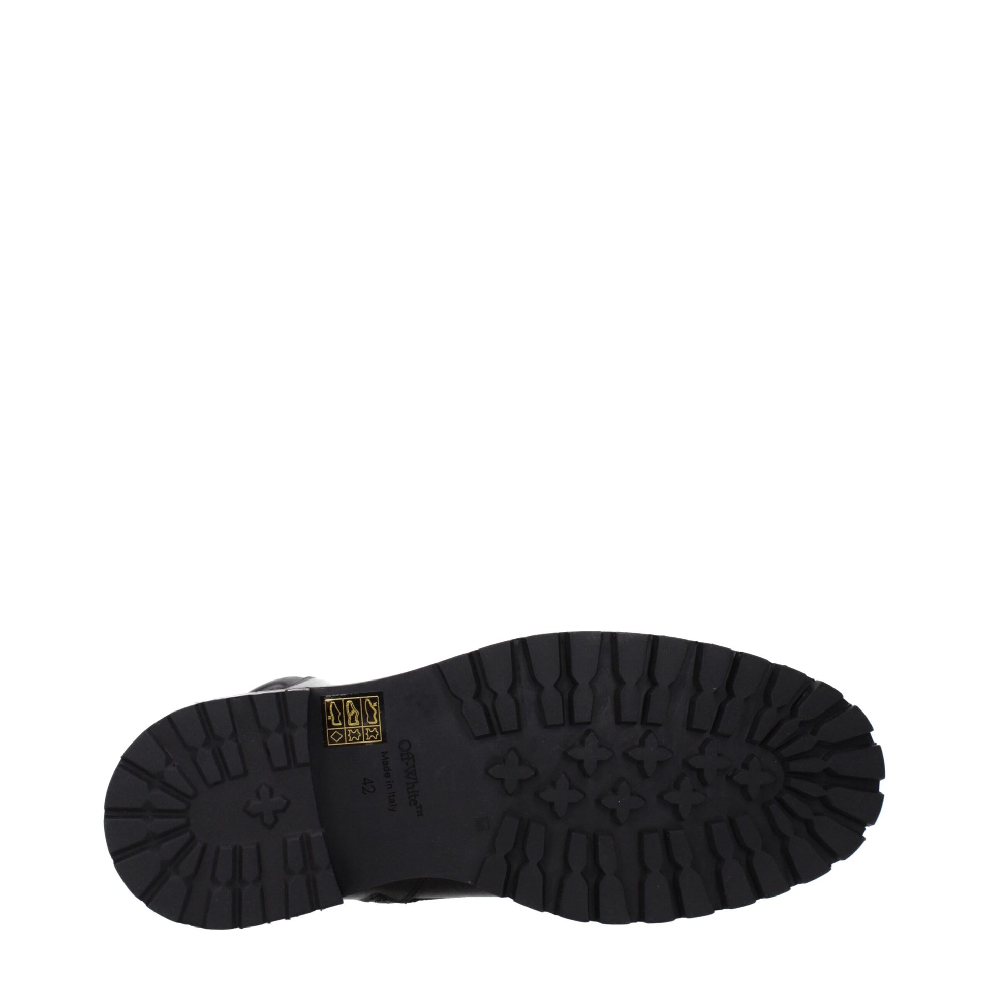 The product with MPN OMID025LEA0011010 and code F84974 leather in black is a ankle boots designed by Off-White. It has features like side logo, vintage effect, aged effect.